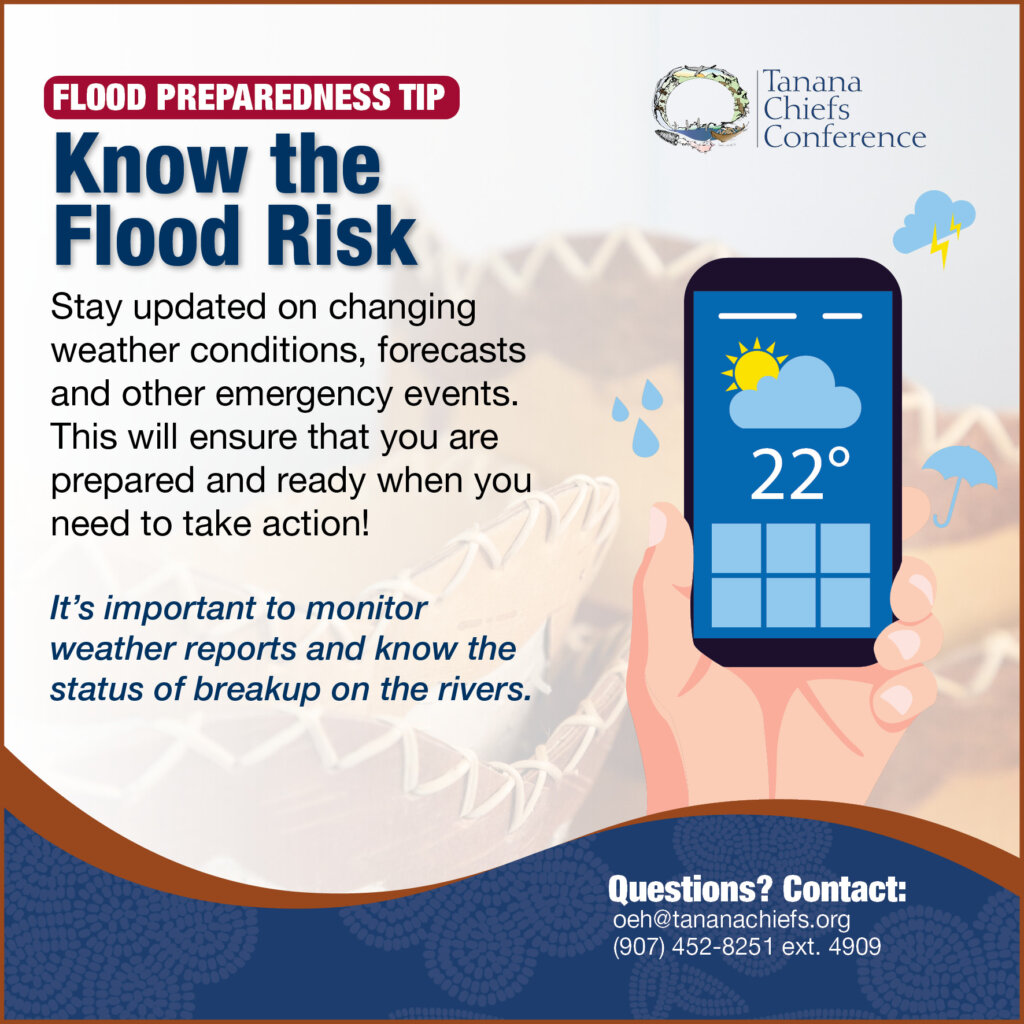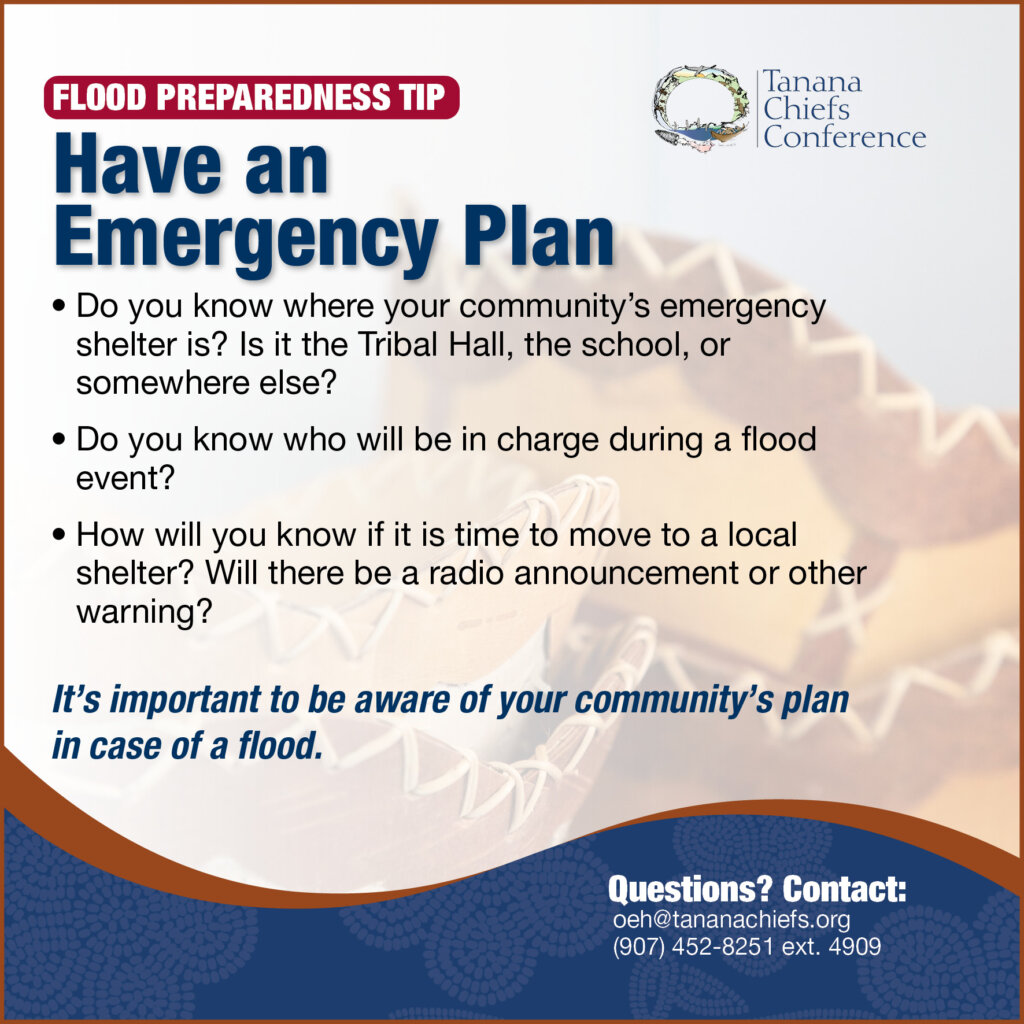When significant flooding strikes one of our interior communities, TCC can step forward to provide supplies and support during times of need, even before government and other organizations can, by coordinating with both state and federal agencies. TCC has always been willing to assist our tribes during disaster situations. However, it is important that you are prepared before flooding happens.