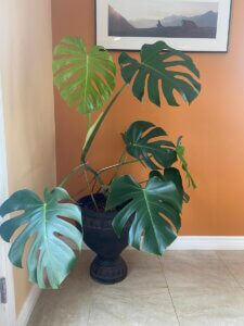 I’ve had issues with terracotta pots indoors leaving mold on whatever furniture they’re on. If you have a very small pot, then you end up having to pay closer attention to watering them. Most of the plants I have can go two weeks to a month without being watered. Pots with a plant insert basically have access to water as needed. But the fig is a different situation. The fig usually needs three gallons of water every five days, especially in the summer.