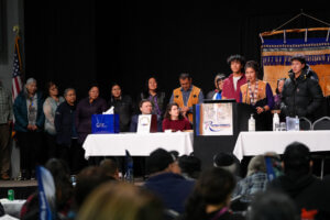 Standing with her family gathered beside her, Chief Hildebrand spoke to the strength of the Interior Tribes and the shared culture that unites the region. Her message centered on coming together, moving forward in a good way, and recognizing the power of the people.