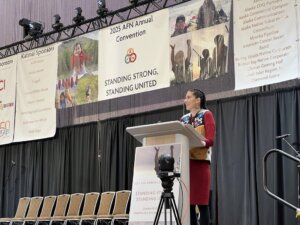 Stevens Village Tribal member and Alaska Native Tribal Health Consortium President Natasha Singh delivered a powerful keynote address at this year’s Alaska Federation of Natives (AFN) Annual Convention, reflecting on this year’s theme — “Standing Strong, Standing United.”